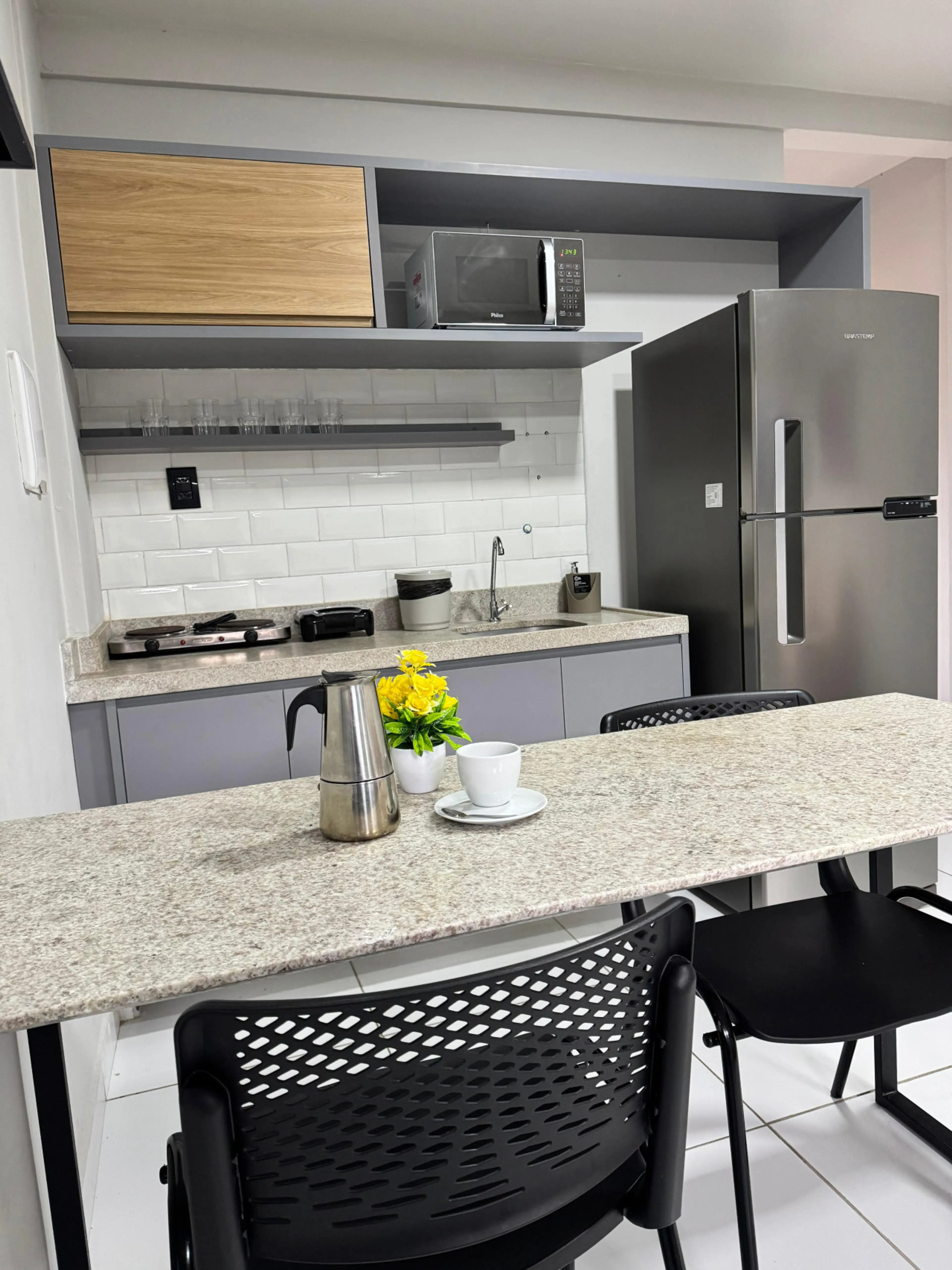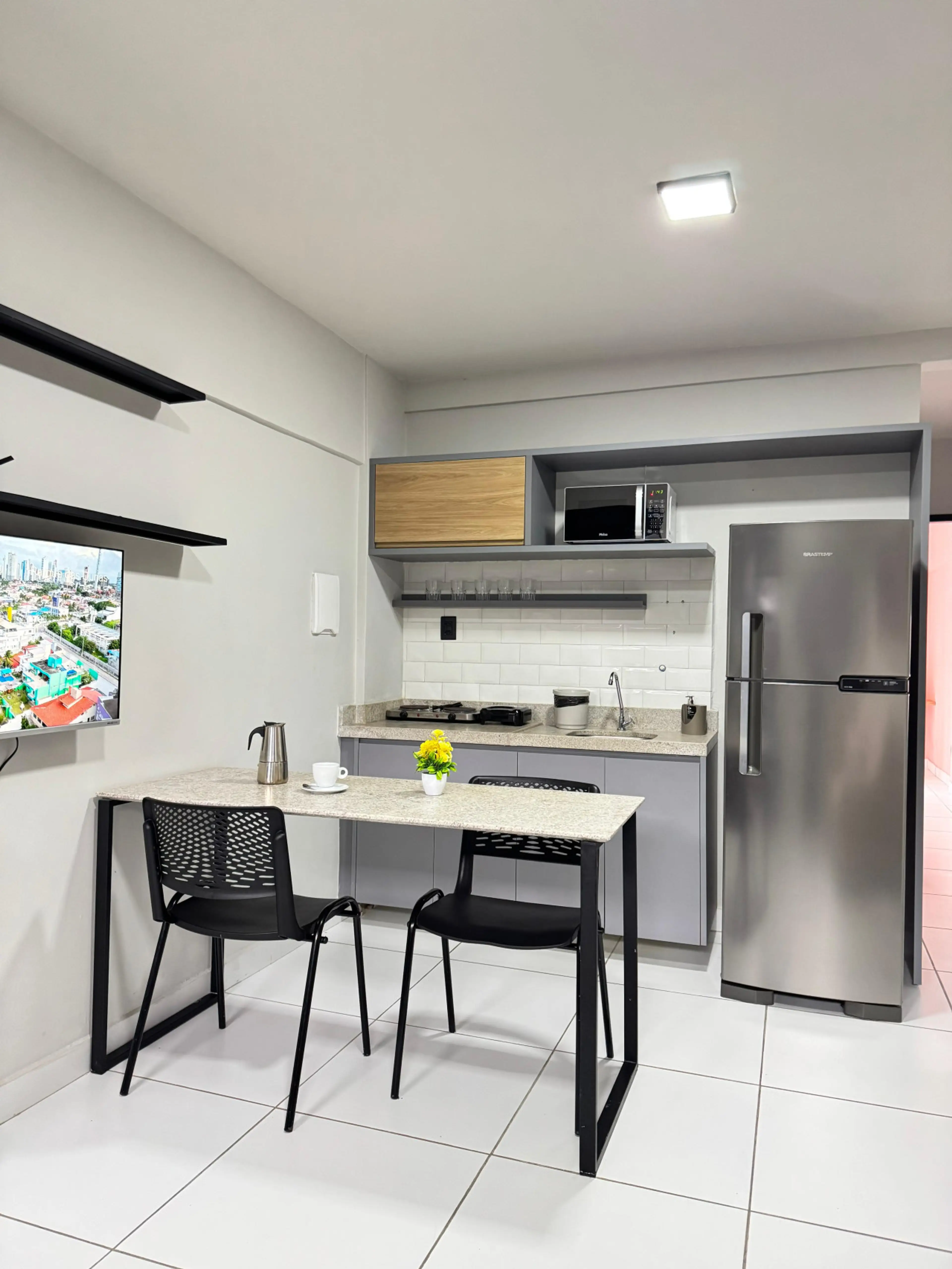 O City Studio é um apartamento de 40m² pensado para oferecer conforto, praticidade e autonomia em estadias curtas, médias ou longas. A unidade conta com sala aconchegante, cozinha totalmente equipada, quarto com cama de casal e banheiro privativo, proporcionando uma experiência completa de moradia ...